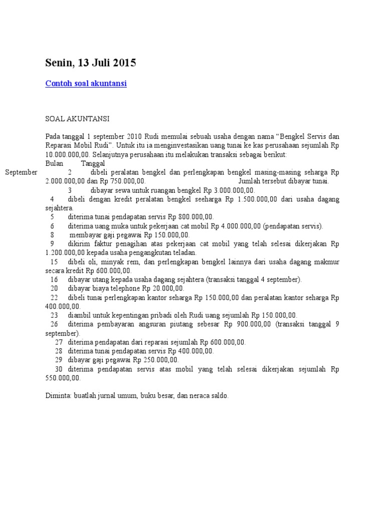 Contoh soal jurnal umum, buku besar dan neraca saldo. We did not find results for: Maybe you would like to learn more about one of these? Check spelling or type a new query.